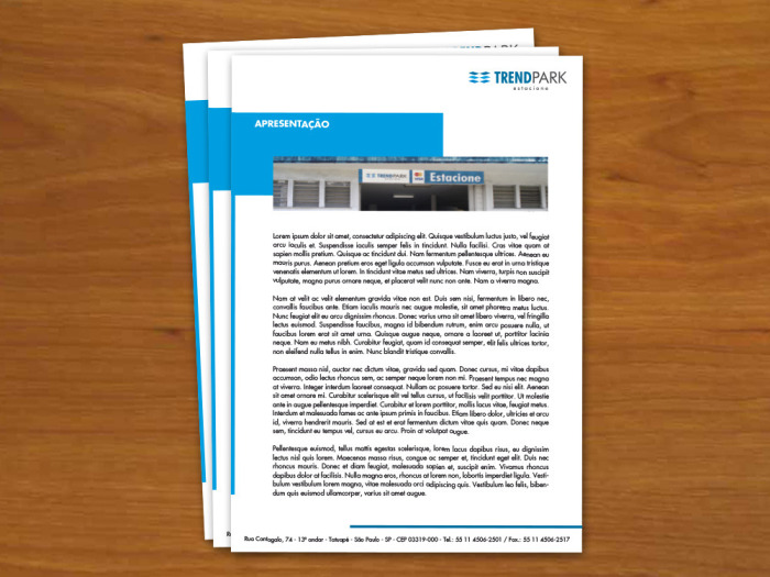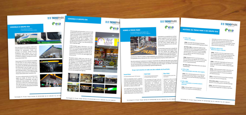 Em parceria com a Fellipe Santos Consultoria em Comunicação Visual, criei o conteúdo para o material de divulgação da rede de estacionamentos Trend Park, que faz parte do Grupo ESA.